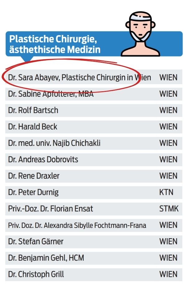 Es erfüllt mich mit großer Freude und auch mit Demut, als einer der beliebtesten plastischen Chirurgen in Wien ausgezeichnet worden zu sein, verliehen vom Kurier.